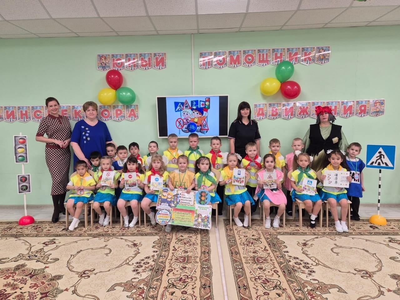 Для воспитанников группы общеразвивающей направленности от 5 до 6 лет № 10 "Рябинка" состоялось торжественное мероприятие "Посвящение в отряд юных помощников инспекторов движения!" На мероприятии присутствовала Воскобоева Марина Григорьевна, инспектор по пропаганде безопасности дорожного движения отдела Госавтоинспекции по городу Радужный. В торжественной обстановке Марина Григорьевна вручила ребятам медали "Знатоки правил дорожного движения" и пожелала удачи в новом деле, безопасных прогулок и добрых дорог!