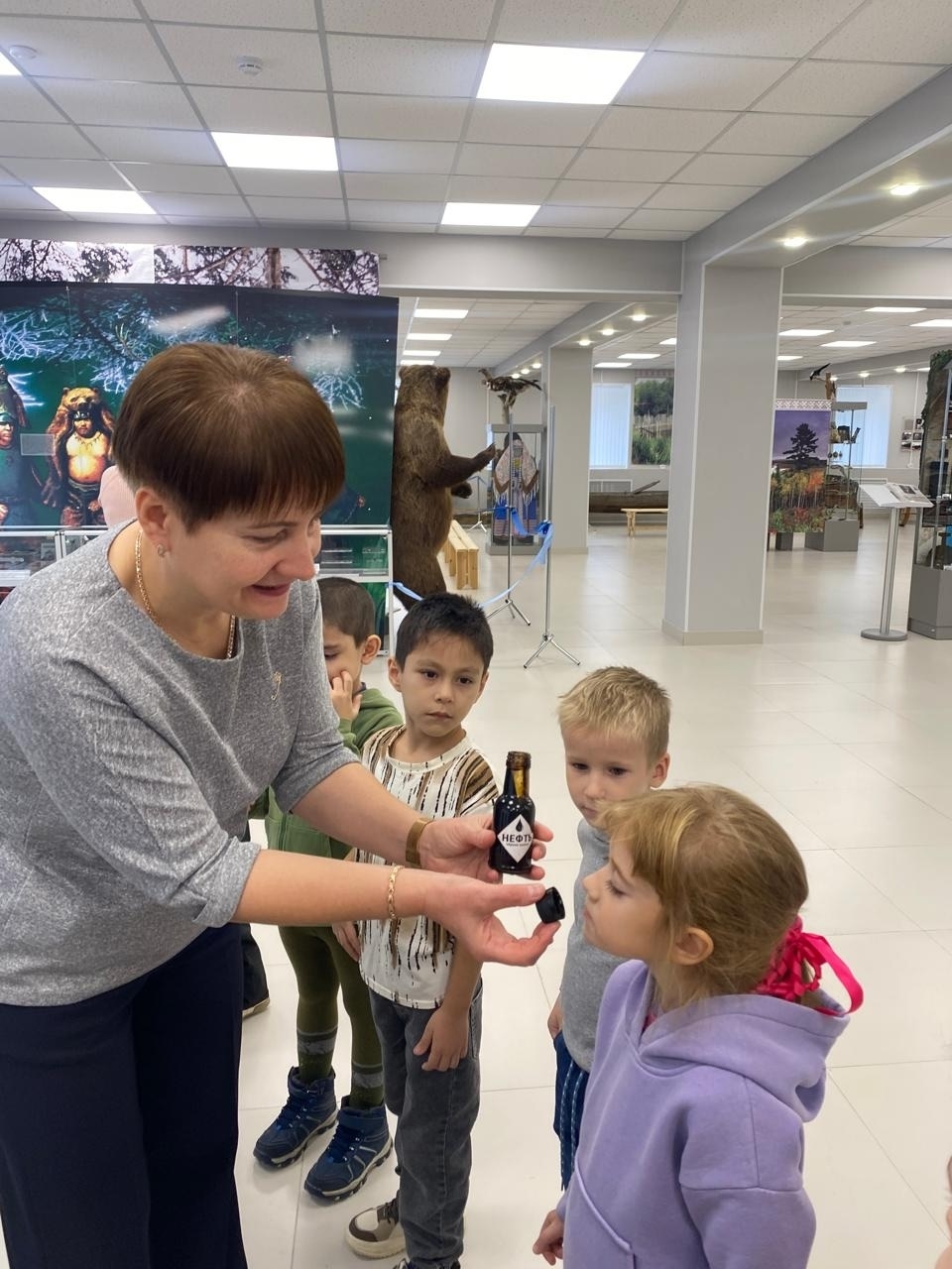 (Корпус 2) Воспитанники подготовительной к школе группы 9 «Морошка» посетили эколого- этнографический музей г. Радужный. Экскурсовод Мария Георгиевна рассказала о истории создания г. Радужный. Познакомила с бытом коренного населения ( Хантов). Рассмотрели нефтяную вышку и познакомились с профессией нефтяников. Вспомнили о разнообразии животного мира нашего края. Ребята получили массу положительных эмоций во время экскурсии. Воспитатели: Казакова Л. И., Диколенко Н.А. Мл. воспитатель: Долгова Н.П.